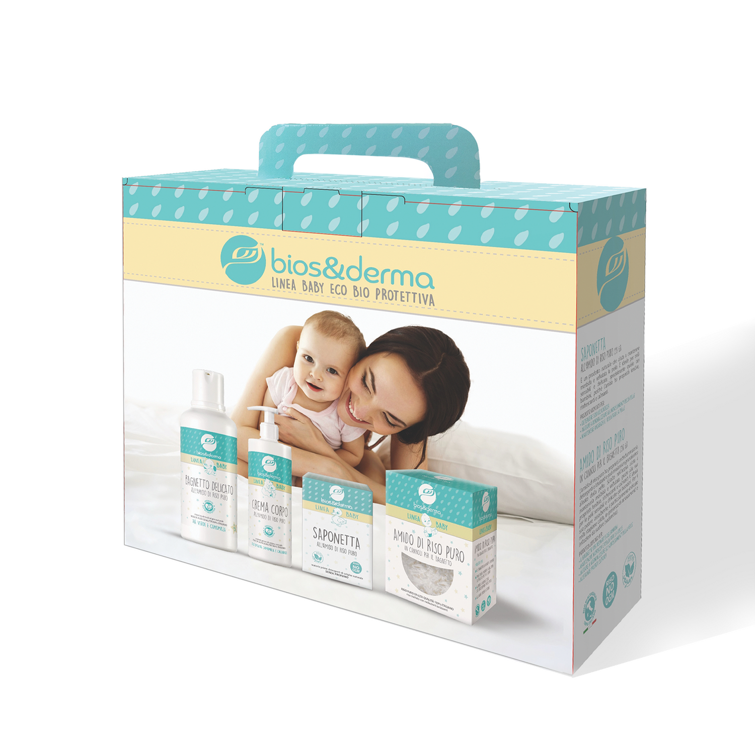 Made with delicate organic ingredients and 100% Italian pure rice starch for the well-being of the skin. Rice Starch has anti-inflammatory, cleansing and hydrating properties and can prove to be a great ally for the skin, especially for that of children. It is soothing, emollient and refreshing.