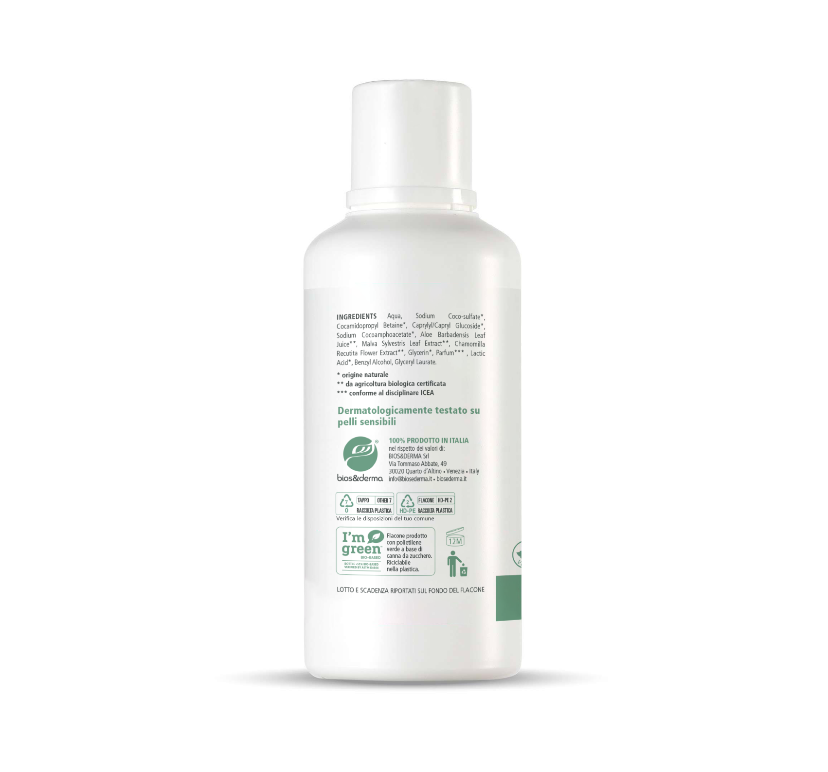 Bios&Derma prefers not to use: added salt, SLES, SLS, parabens, cocamide DEA, PEG, agents of petrochemical derivation and derivatives of animal origin.